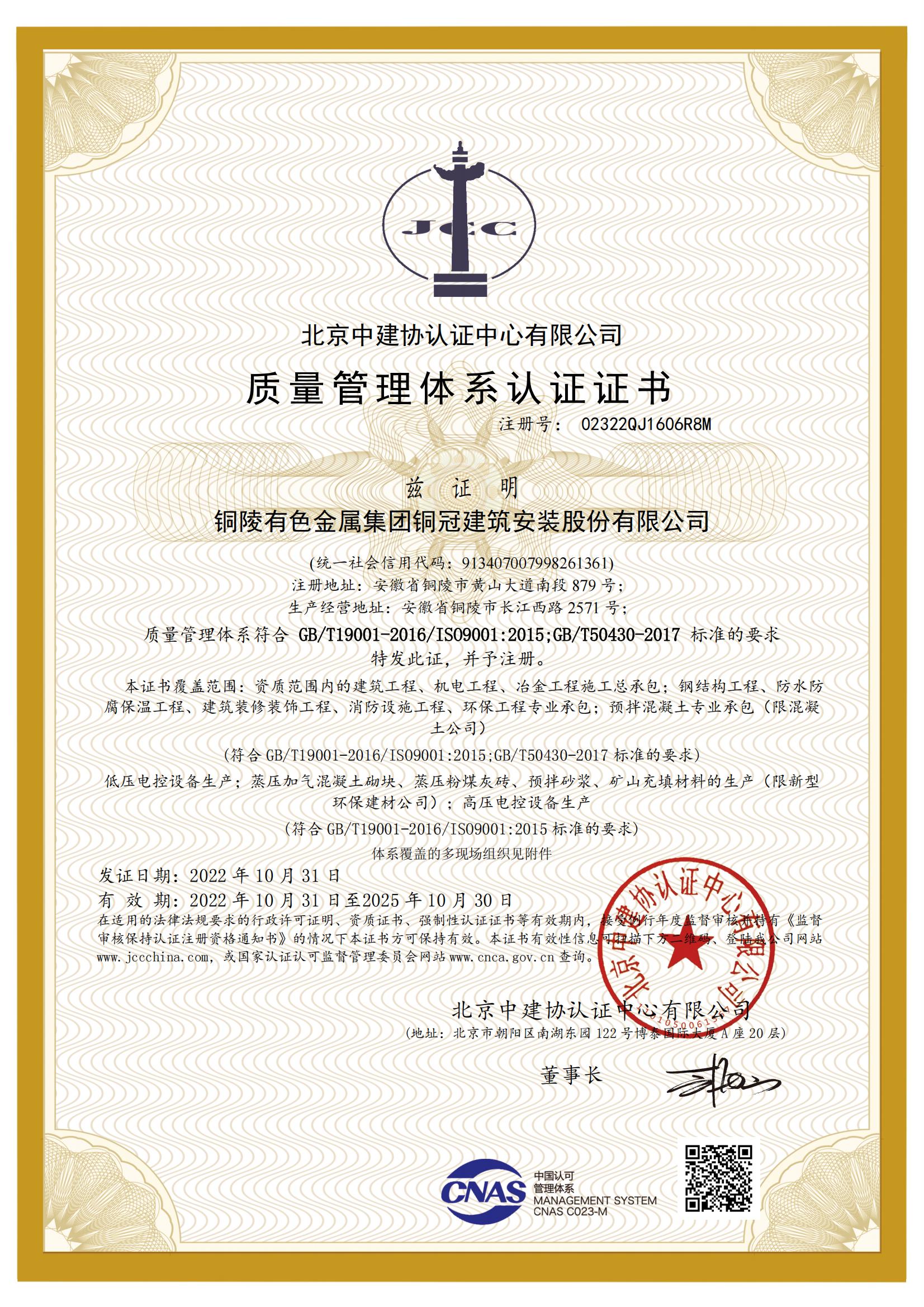 有色金屬工業(yè)建設(shè)工程質(zhì)量檢測機(jī)構(gòu)資質(zhì)證書